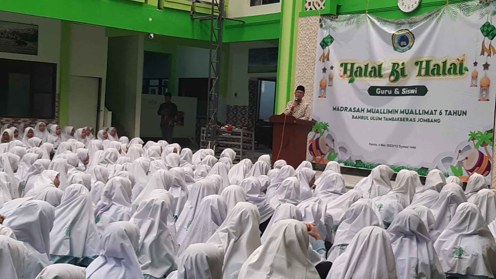 Hari pertama masuk madrasah, kegiatan di Madrasah Muallimin Muallimat 6 Tahun Tambakberas diisi dengan menyelenggarakan halal bi halal siswa, guru dan tenaga kependidikan, pada Kamis (04/05).