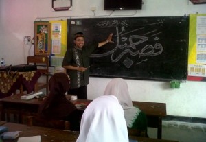 Sementara itu, di lantai 3 gedung sebelah barat, tampak sekitar 15-an siswi serius dengan pena-nya masing-masing. Tampak para siswi ini sulit untuk diajak berkomuniksasi. Karena berkomuniaksi dalam kondisi tersebut akan mengganggu konsentrasi mereka dalam berlajar. Hal ini karena, para siswi tersebut sedang serius mengerjakan tugas yang diberikan oleh guru Khat Araby (Kaligrafi) mereka.