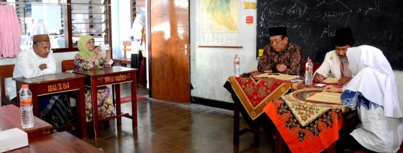 Ujian yang dilaksankan pada Ahad (16/04/2017), di ruang-ruang kelas kemarin berlangsung sangat khidmat. Tampak penataan meja diatur sedemikian rupa, dimana penguji menghadap ke orang tua yang menunggu giliran anakknya diuji, disamping kiri meja siswa-siswi yang diuji dan, di depan meja siswa-siswi peserta ujian agak jauh diduduki orang tua siswa-siswi bersangkutan.