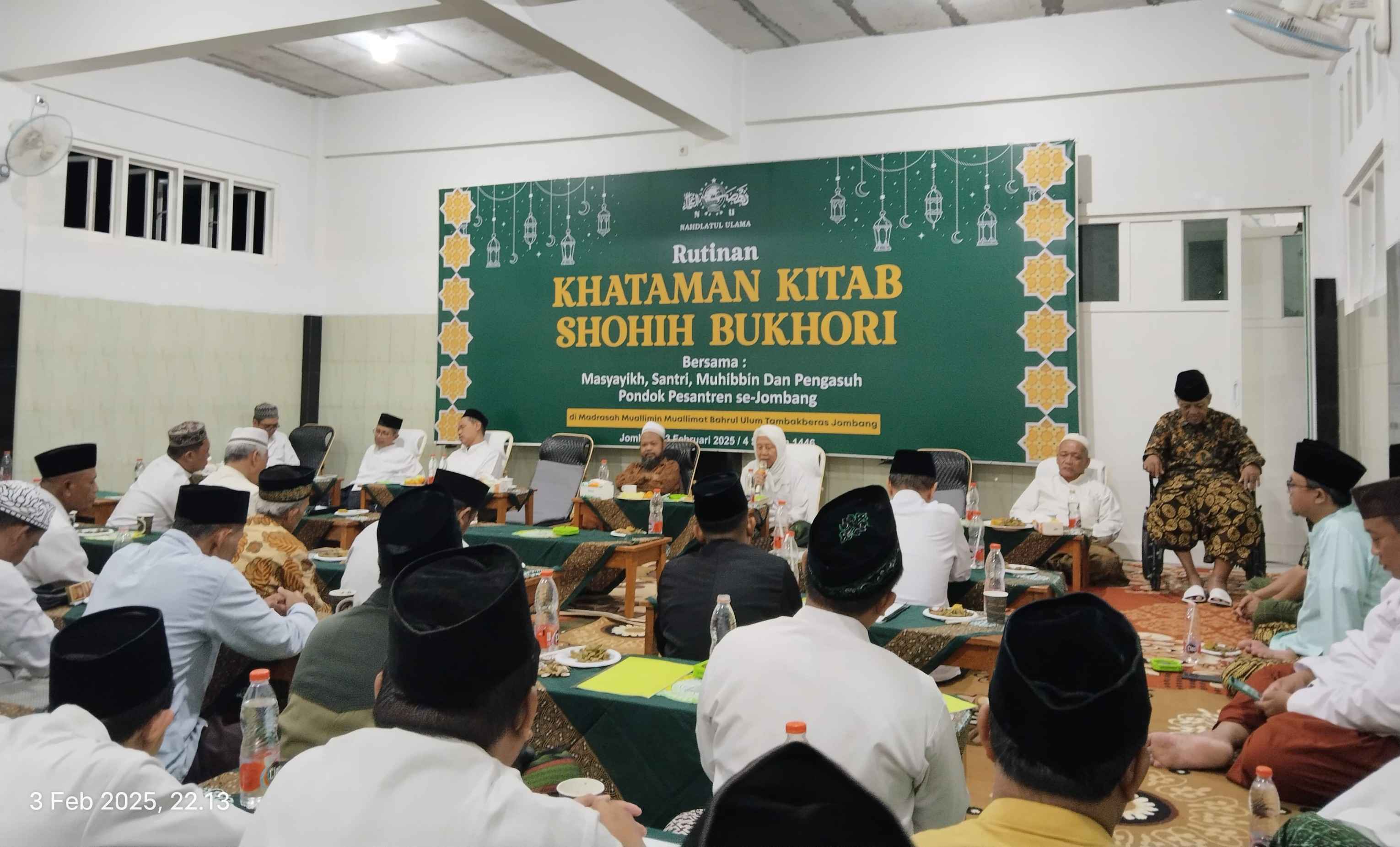 Lebih dari 200-an Jamaah Khatman Kitab Shohih Bukhari hadiri kegiatan di Gedung III Madrasah Muallimin Muallimat, dusun Gedang, Tambakberas, pada Senin malam Selasa (03/02). Kegiatan yang diinisiasi oleh almarhum KH Abdul Nashir Fattah tersebut dilakukan secara rutin dengan berpindah-pindah tempat sejak 4 tahun yang lalu. Sejak terjadinya bencana pandemi Covid-19 tahun 2021.