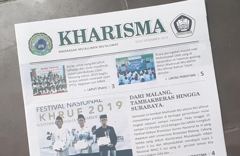 Muallimin Online, Koran Madrasah KHARISMA Edisi Desember 2019, yang diterbitkan pengurus Organisasi Siswa Intra Sekolah (OSIS) Madrasah Muallimin Muallimat 6 Tahun Bahrul Ulum, pada hari ini, Senin (16/12) mulai beredar, bersamaan dengan pembagian rapor.