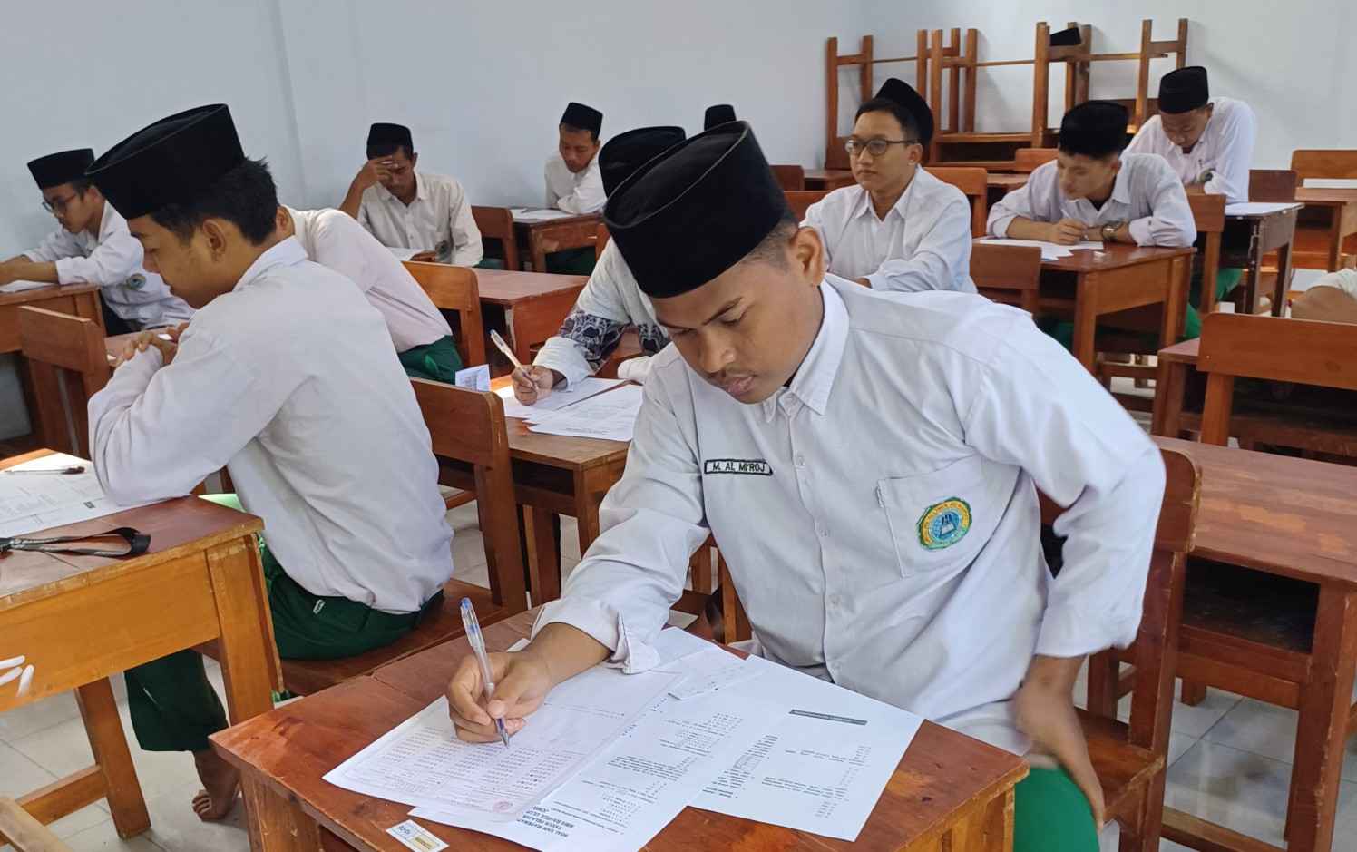Meskipun di awal bulan puasa Ramadhan, siswa Madrasah Muallimin Muallimat 6 Tahun Tambakberas terlihat masih bersemangat mengikuti Ujian Akhir Madrasah (UAM) Tulis dan Penilaian Tengah Semester (PTS) II di hari pertama.