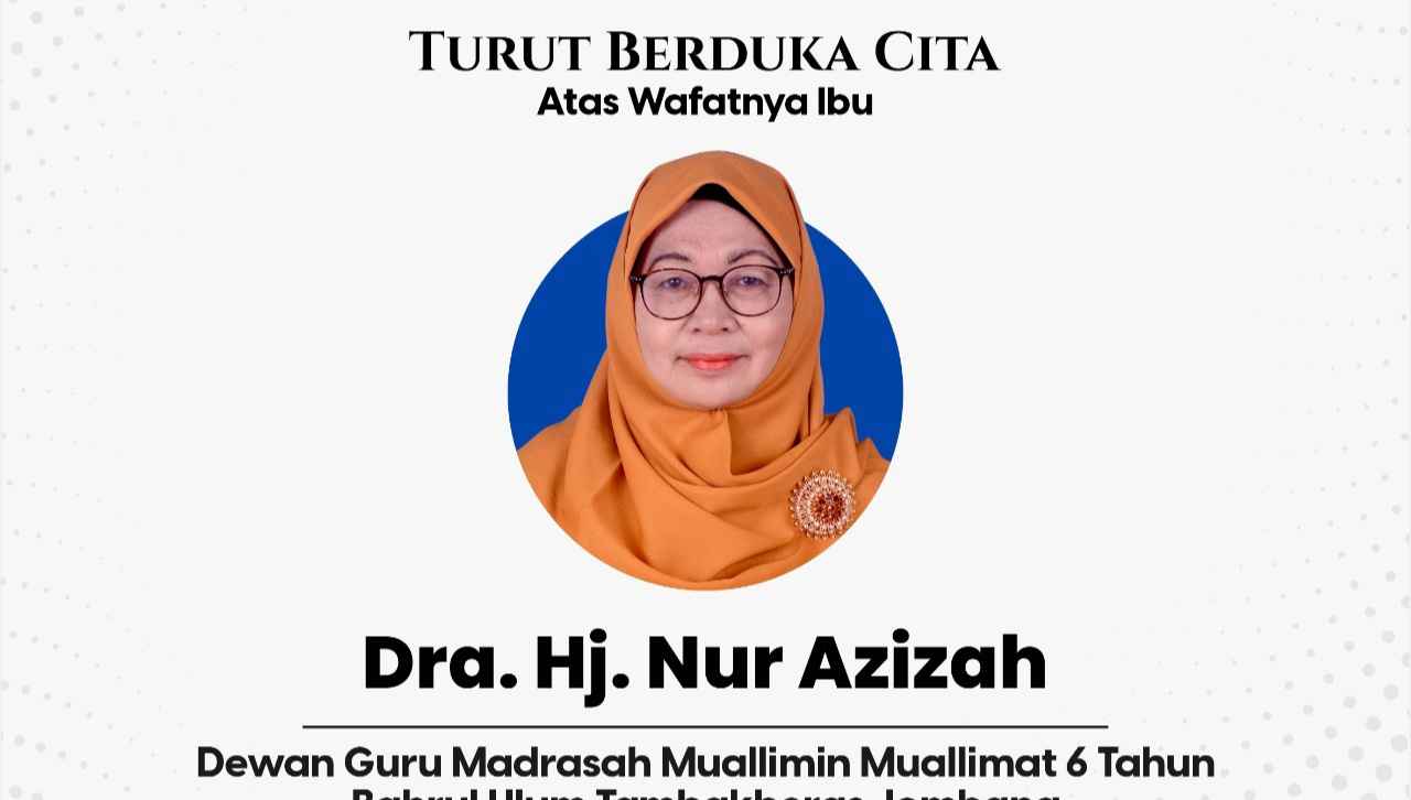 Madrasah Muallimin Muallimat 6 Tahun Tambakberas kembali berduka. Ibu Dra. Hj. Nur Azizah, salah satu guru senior Madrasah, malam ini, Senin (21/04), sekitar pukul 19.50 WIB, pulang ke Rahmatullah.