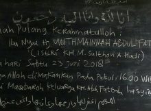 Hari ini, tepat pukul 09.15 WIB, Nyai Hj Mutmainnah Fattah (68), istri KHM Sulthon Abdul Hadi, berpulang ke Rahmatullah.