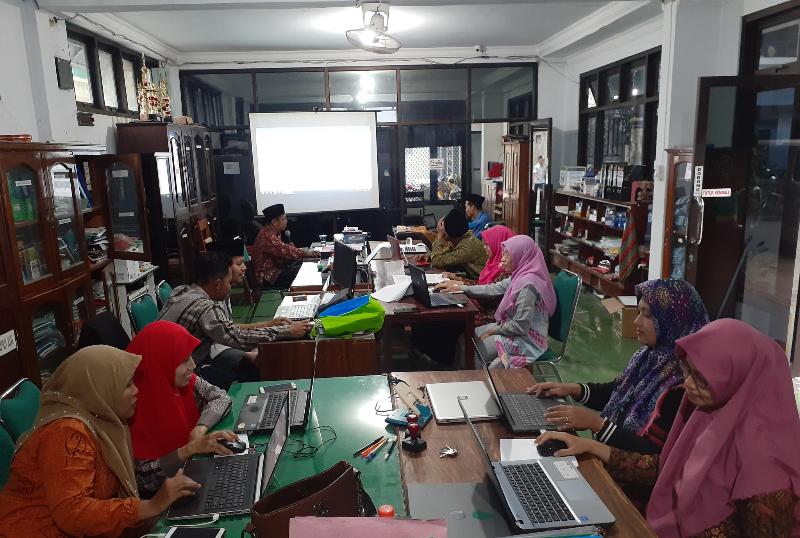 Guru-guru Satuan Administrasi Pangkalan (Satminkal) Madrasah Muallimin Muallimat Tambakberas, dengan sangat serius mengikuti proses Penilaian Kinerja Guru (PKG) yang diselenggarakan Kantor Kementerian Agama Jombang, Kamis (22/08).