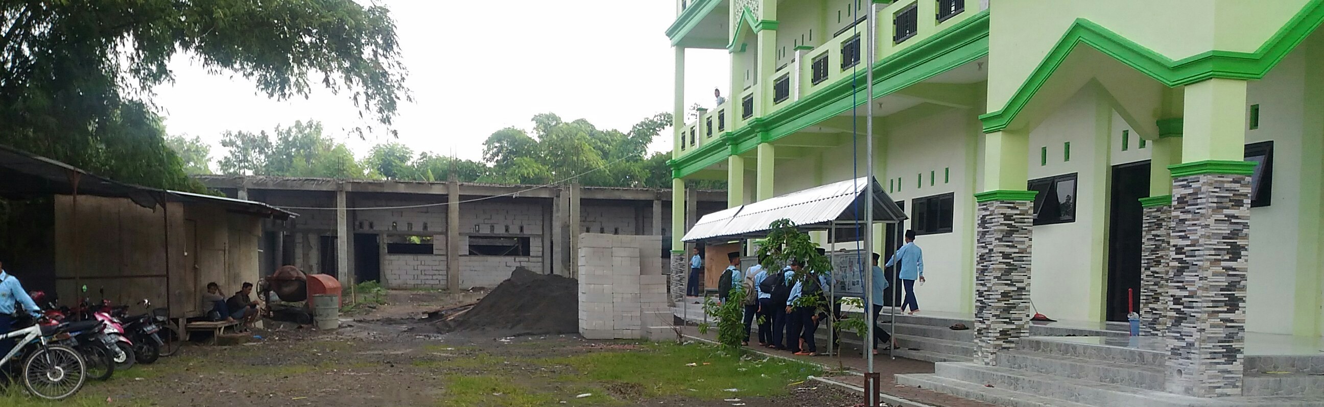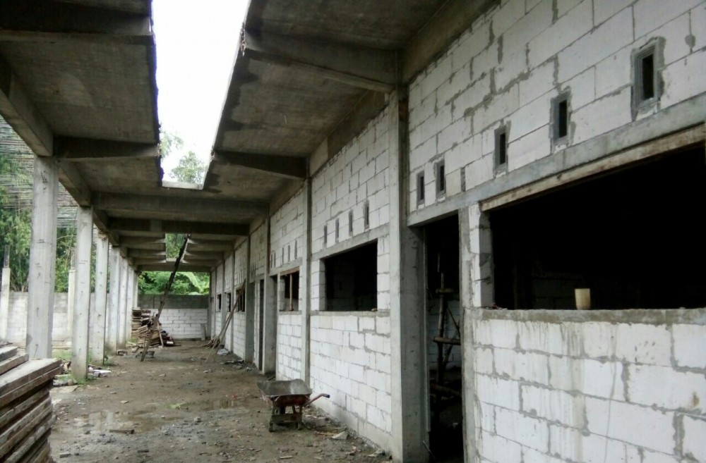 Sementara satu bangunan lagi, menghadap ke selatan, yang saat ini masih dalam proses selesai pengerjaan cor atap lantai I dari 3 lantai yang direncanakan.