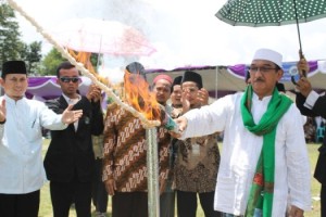 Akhirnya tibalah acara yang ditunggu-tunggu, penyulutan obor dan persembahan panitia HUMAPON sebagai tanda dibukanya HUMAPON tahun 2013. Diawali dengan masuknya mobil Jeep yang menjemput Ketua Yayasan dan Mejelis pengasuh, Gus Hasib dan Gus Irfan yang membawa beliau menuju tempat penyulutan obor yang terletak di tengah lapangan.