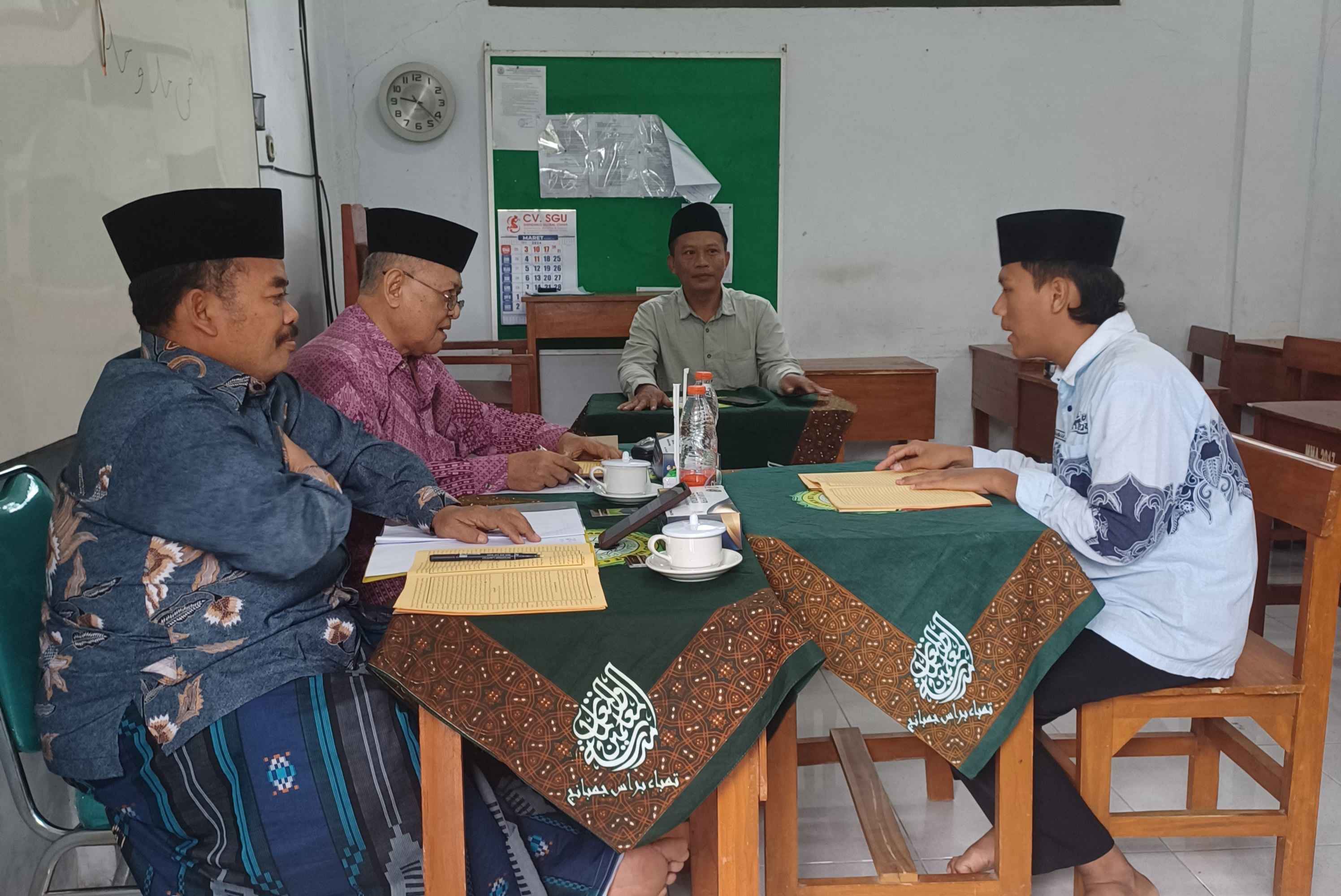 Setelah mengambil maqro' (batas baca), berupa kartu seukuran kartu ATM, yang disediakan panitia bagian penjaga ruang, di suasana pagi yang diliputi mendung, Abdurrahman Royyan Muhammad, salah satu siswa putra kelas akhir, sesegera mungkin membuka halaman kitab Tuhfatut Thullab Syarh Matan Tahrir, sesuai maqro' yang dia pilih.