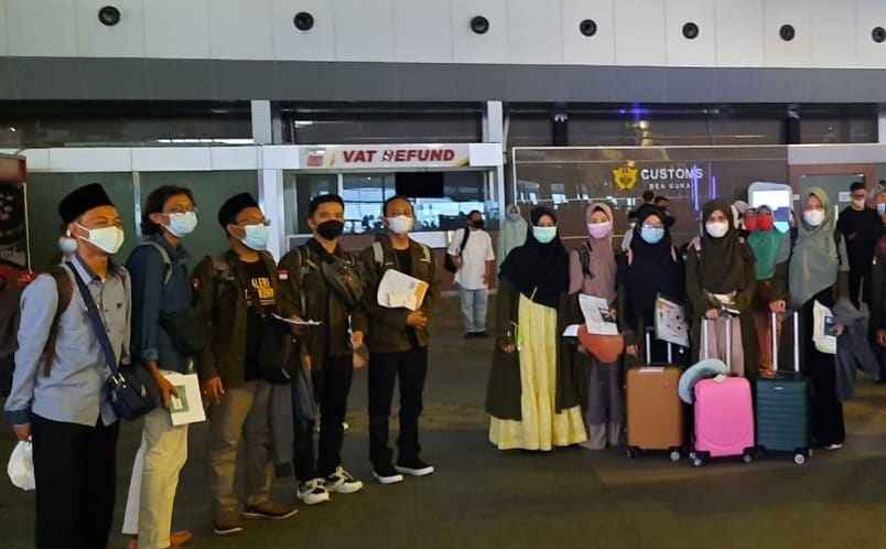 "Alhamdulillah, setelah melakukan tes swab PCR dan hasilnya dinyatakan negatif, akhirnya pada hari ini, Selasa tanggal 4 Mei ini, ia berangkat dari juanda ke Soekarno Hatta kemudian dg pesawat Emirates 357 pukul 17.35 WIB take off menuju Dubai. Transit sebentar, lalu menuju cairo dan akan tiba pada Rabu tanggal 5 Mei pukul 10.00 pagi", terang pria yang biasa disapa Pak Oyik ini.