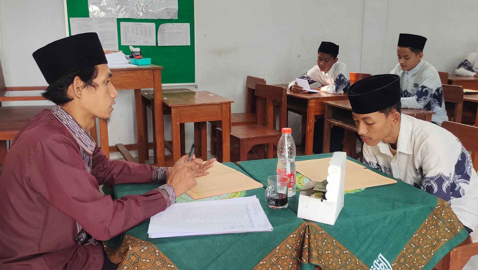 Setelah selesai mengikuti ujian tulis dalam rangka PAT sejak Senin (03/06), hari ini, Sabtu (15/06) dan besok, Ahad (16/06), siswa Madrasah Muallimin Muallimat mengikuti ujian lisan membaca kitab kuning.