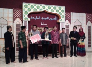 Siswa-Siswi Muallimin Muallimat Bahrul Ulum, membawa piala juara umum dalam Pekan Arab di Universitas Negeri Malang yang diselenggarakan pada Sabtu-Selasa (26-29/10).