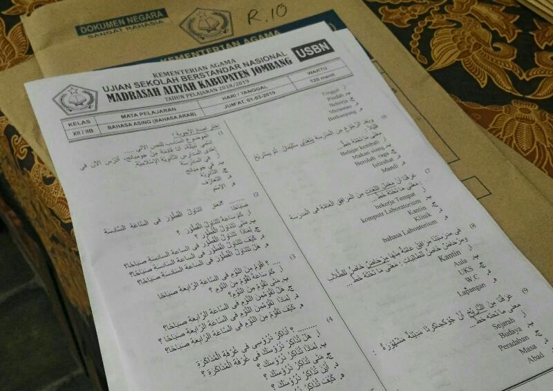 Soal Bahasa Asing Ujian Sekolah Berstandar Nasional (USBN) tingkat Madrasah Aliyah (MA) yang dibuat oleh Kementerian Agama Jombang membuat peserta ujian kebingungan karena ada beberapa yang salah dan tidak lengkap.