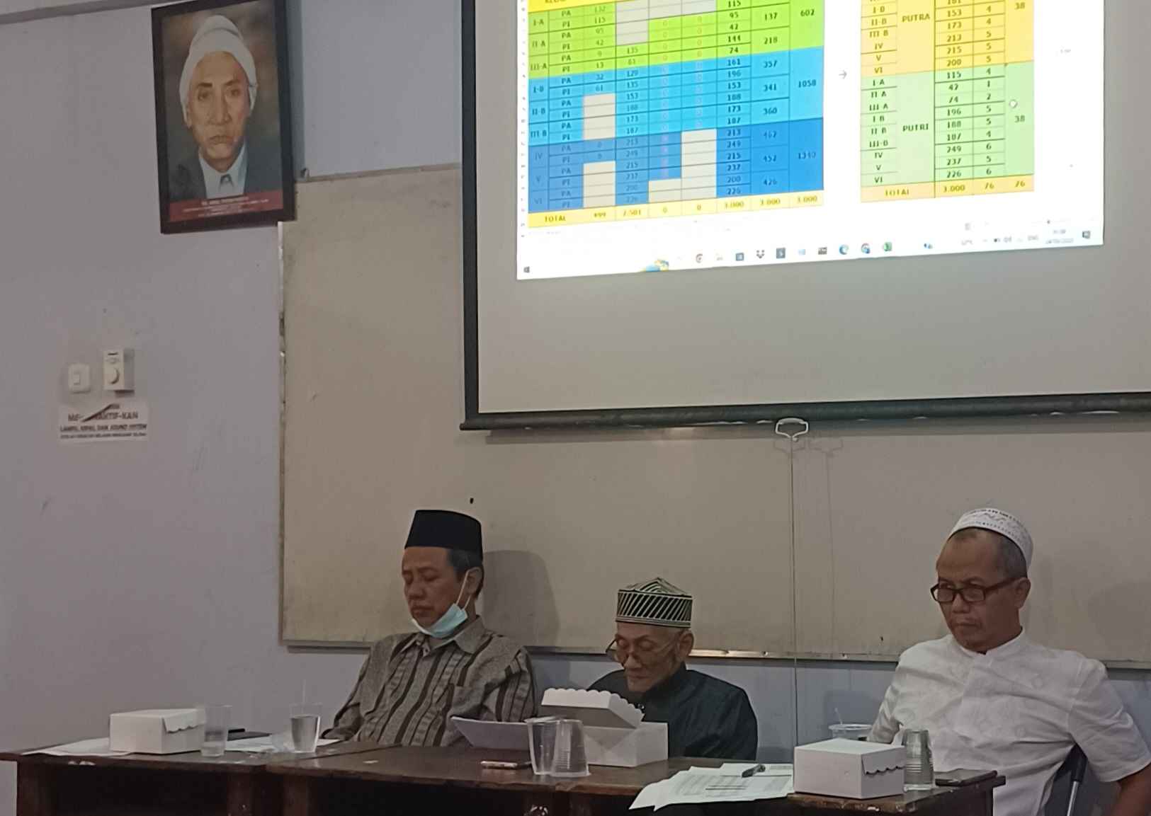 Rapat yang diselenggarakan di Aula Gedung Barat (Muallimat) tersebut dihadiri Kepala Madrasah, Wakil Kepala Madrasah I, II dan III, serta para pimpinan.