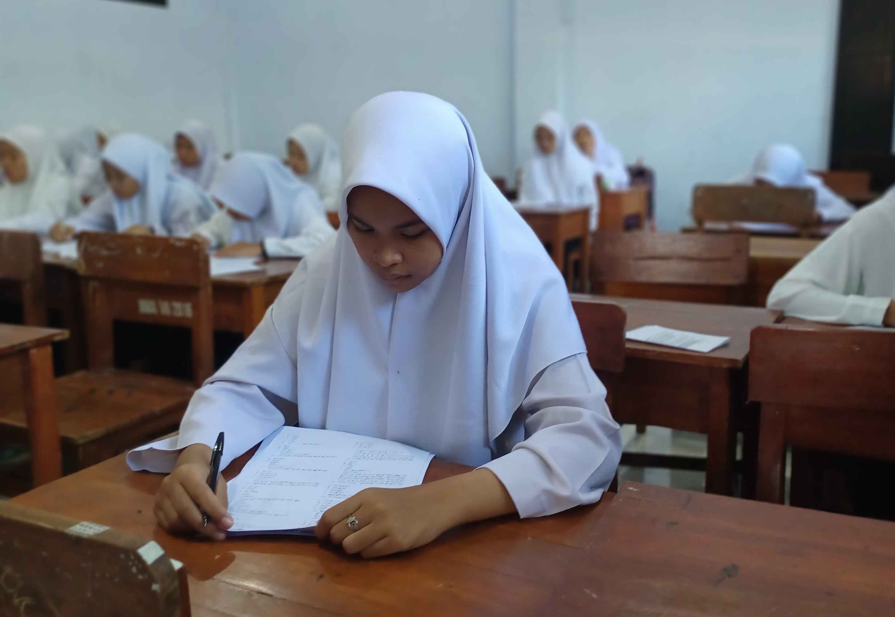 Calon peserta didik baru Madrasah Muallimin Muallimat 6 Tahun Tambakberas mengikuti tes masuk penerimaan peserta didik baru (PPDB) tahun ajaran 2023/2024, pada hari ini, Ahad (04/06).
