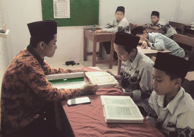 Siswa siswi kelas 1A Madrasah Muallimin Muallimat, disamping diharuskan mengikuti ujian lisan baca kitab, juga diharuskan mengikuti ujian lisan baca al Quran, yang diselenggarakan pada hari ini, Jumat (10/05).